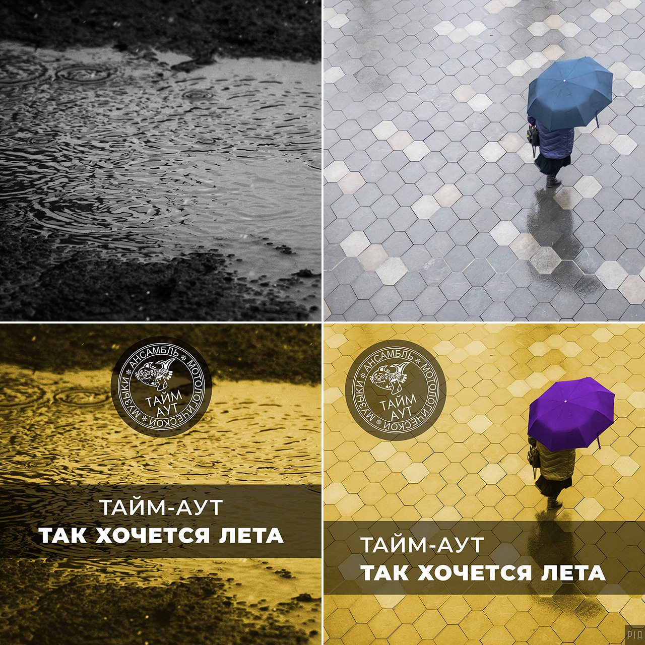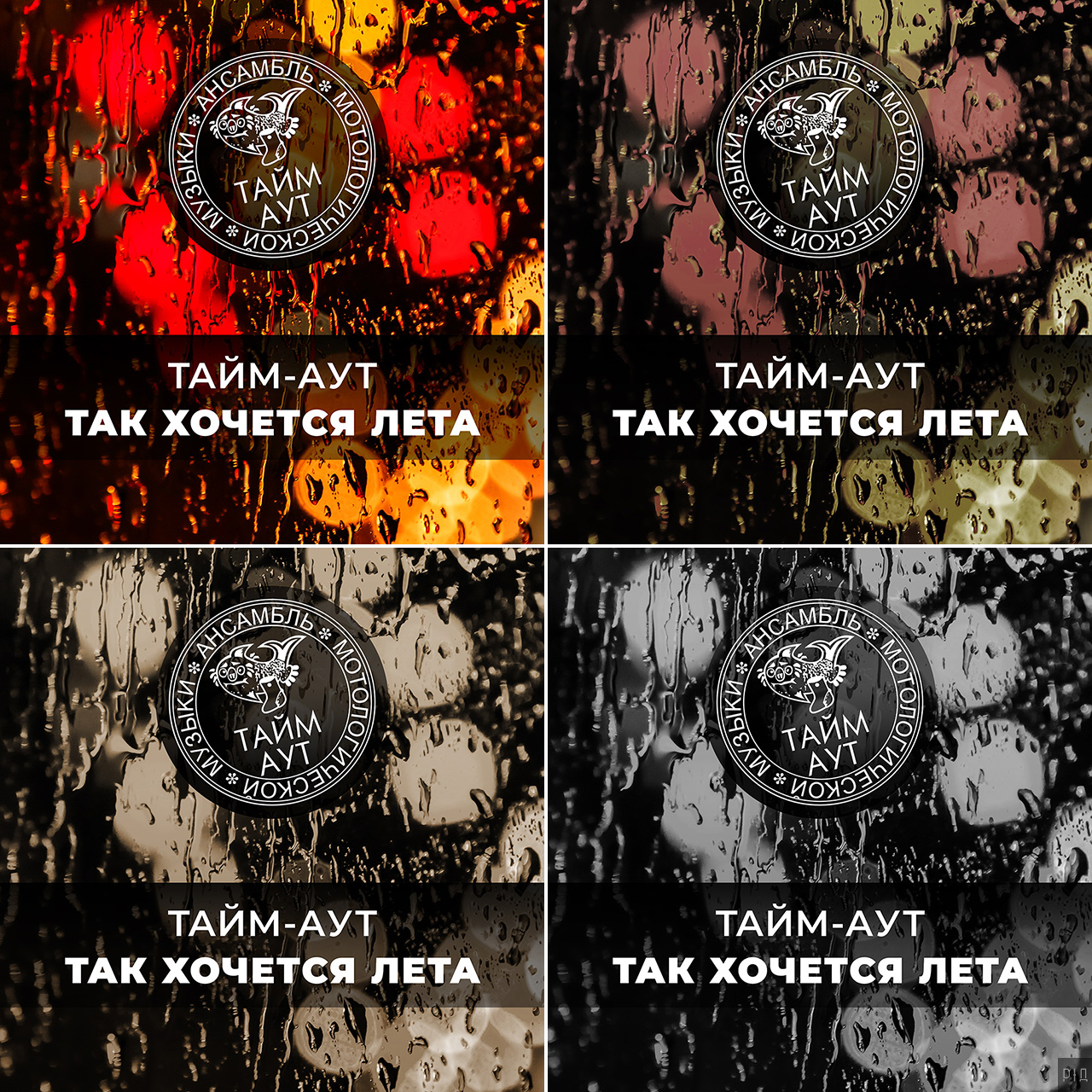 Музыка, слова, фото. Часть 2: «Так хочется лета»2025 г. Про капли, времена года и точность метеосводки. Задача: оформить обложку цифрового сингла «Так хочется лета» группы В 2024 году ансамбль выпустил, Понятно, что на обложке тему осени и ностальгии по лету можно передать через дождь. Как и в прошлый раз, из собственных работ я подобрал несколько соответствующих снимков. Большинство отсеял по разным причинам, оставил два. Эскизы на их основе не подошли. ![]() Тогда мне предложили идею с каплями дождя на стекле и размытой улицей на фоне. В эту же секунду у меня созрели и визуальный образ, и способ его воплощения. Для начала я нарисовал эскиз с подходящей под замысел картинкой. ![]() После этого необходимо было сделать уникальное фото. Решил сфотографировать капли на лобовом стекле машины с ночными огнями на фоне. Я как раз собирался ехать на дачу поздним вечером и даже определил подходящее место для съемки. Только, как назло, по прогнозу не обещали дождь. Однако полило через пять минут после выезда из дома. Я тут же остановился, увидел, что нужная картинка складывается прямо на месте, и начал снимать. Еще через несколько минут осадки прекратились, но у меня был запасной вариант — брызгалка с водой для очистки стекла. Изобразил дождь и доснял серию кадров. ![]() На основе отобранного снимка получилось четыре варианта разной цветности: исходный, с приглушенными цветами, сепия и ![]() Релиз: 04.09.2024. ![]() Примечание: процесс координировался заказчиком; здесь описана только моя часть работы, которая состояла в фотосъемке, отборе и обработке снимков, создании эскизов, верстке текста и размещении элементов композиции на изображении. В предыдущей серииМузыка, слова, фото. Часть 1: «На линии огня». |